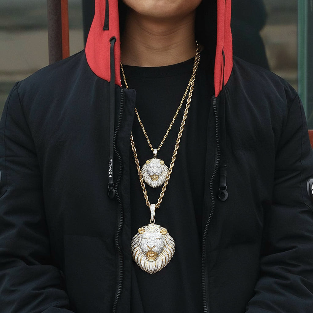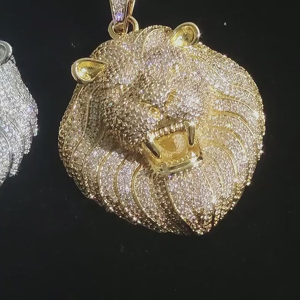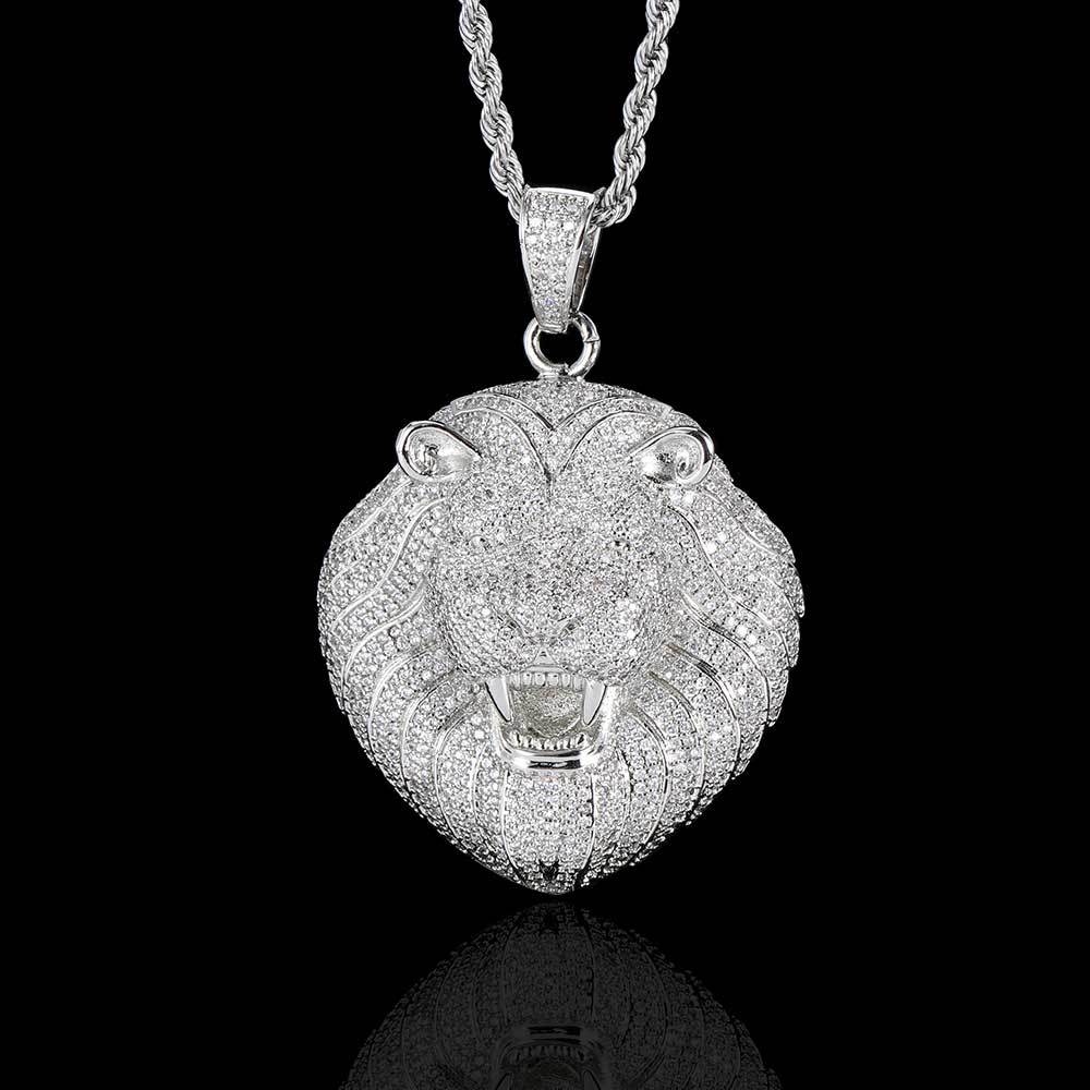 Wholesale Iced Out Lion Head Pendant Cubic Zirconia Hip Hop Copper Necklace, Chain 24in*3mm