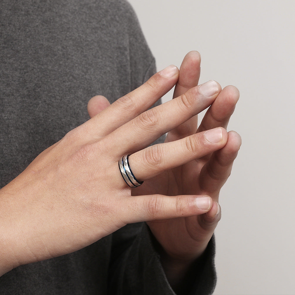 Introducing a bold and stylish men’s ring designed with a distinctive engraved tungsten-texture pattern, bringing a strong European fashion influence and modern masculine aesthetic.