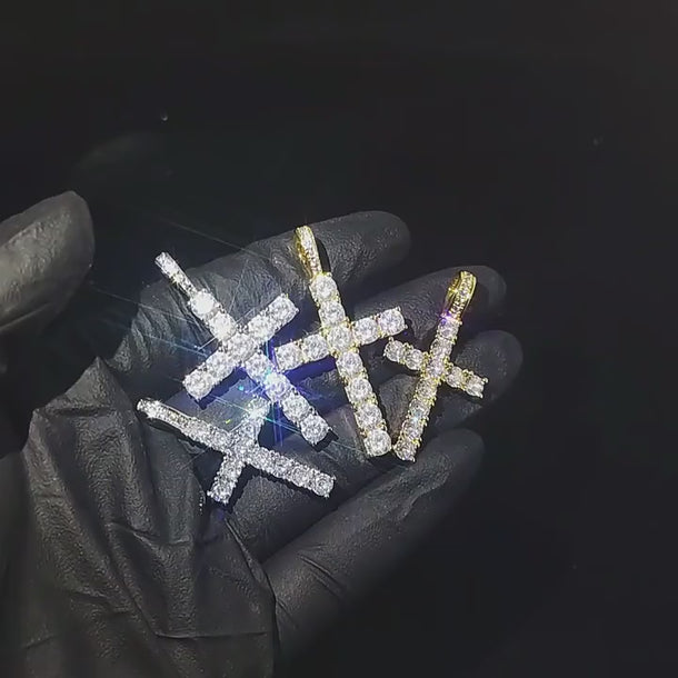 Wholesale Moissanite D/VVS1 Round-Cut Hip Hop 925 Silver Cross Pendant Necklace 24in,Waterproof GRA Certified