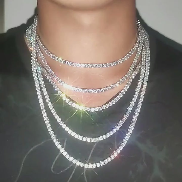 Jewelry wholesale Wholesale Tennis Chain Cubic Zirconia Hip Hop Chain Bracelet & Necklace Set, - 18K Gold-Plated , Chain 7in-24in Silver / 3mm / 16in(40.64cm)
