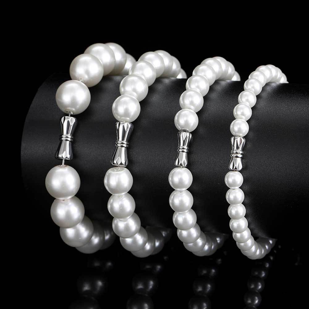 Wholesale Trendy Hip Hop Jewelry Set Pearl Statement Necklace&Braclet, Chain 7in,7.5in,8in,8.5in,9in,16in,18in,20in,22in,24in,26in,28in,30in